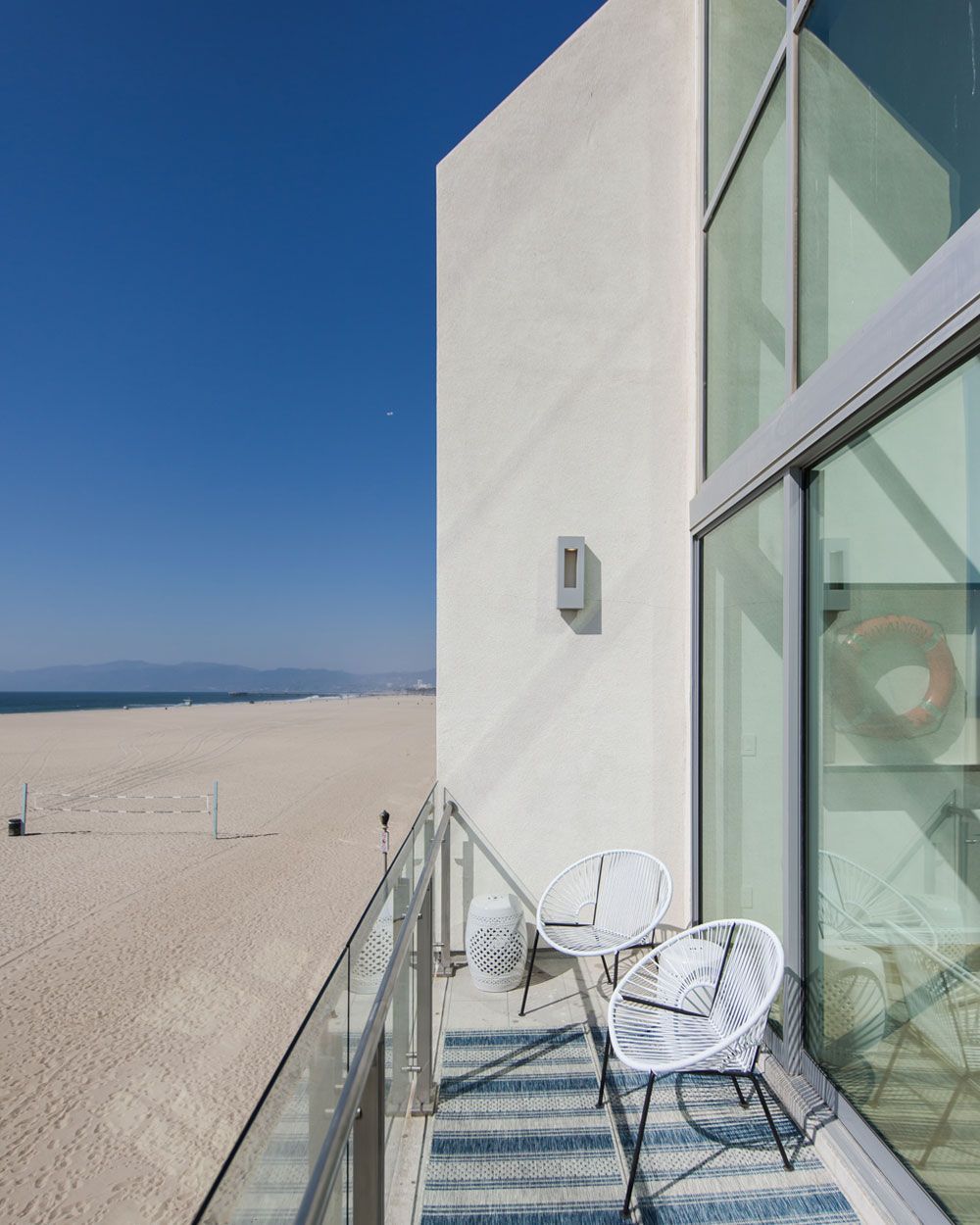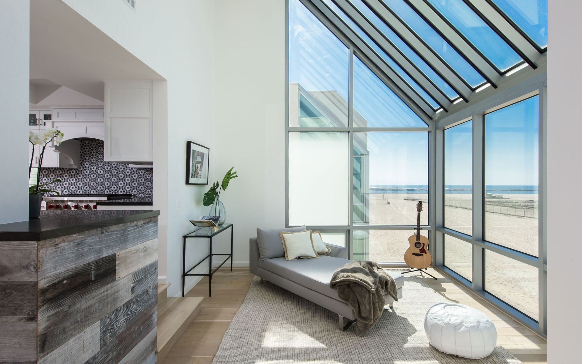 Throughout the home, all doors were replaced, and new finishes and flooring were selected to lighten and brighten the interior. Each bedroom and bathroom was renovated, including the double-height loft bedroom with stunning ocean views. The design was transformed from a late 1980s style to a high-style, modern aesthetic that is casual enough for coastal living yet sophisticated enough for a chic beach pad.