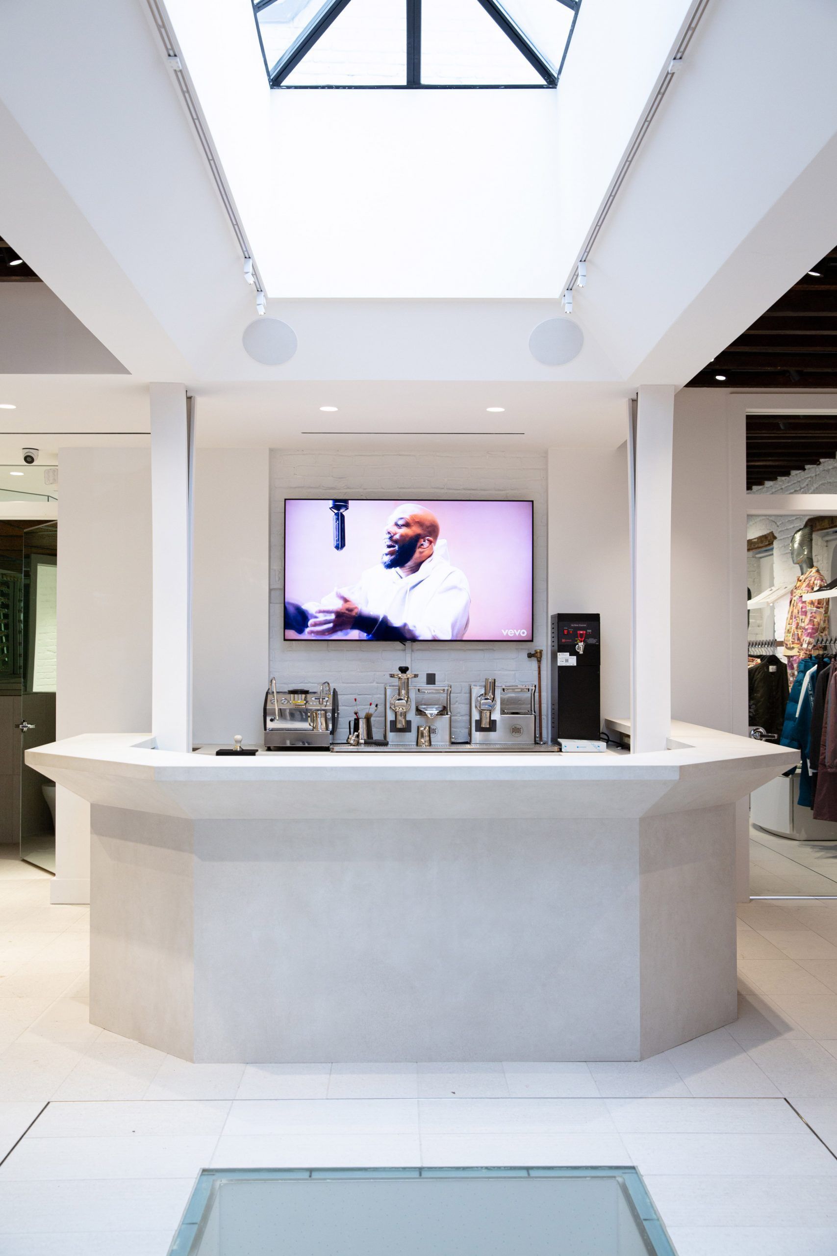 4+ reoriented the house to maximize stunning bay and ocean views. The main bedroom suite now includes terraces overlooking the water. The expanded living room enhances the view of the infinity pool. The redesigned kitchen, accessible via a new mudroom, features a butler's pantry, large island, and breakfast area on the water.